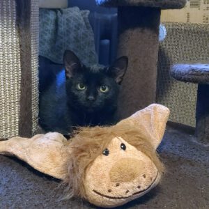 Die kleine schwarze Prinzessin hat aber auch viel Schmusepotential, sie schnurrt, wenn sie gekrault wird – ist aber in manchen Situation noch ängstlich.