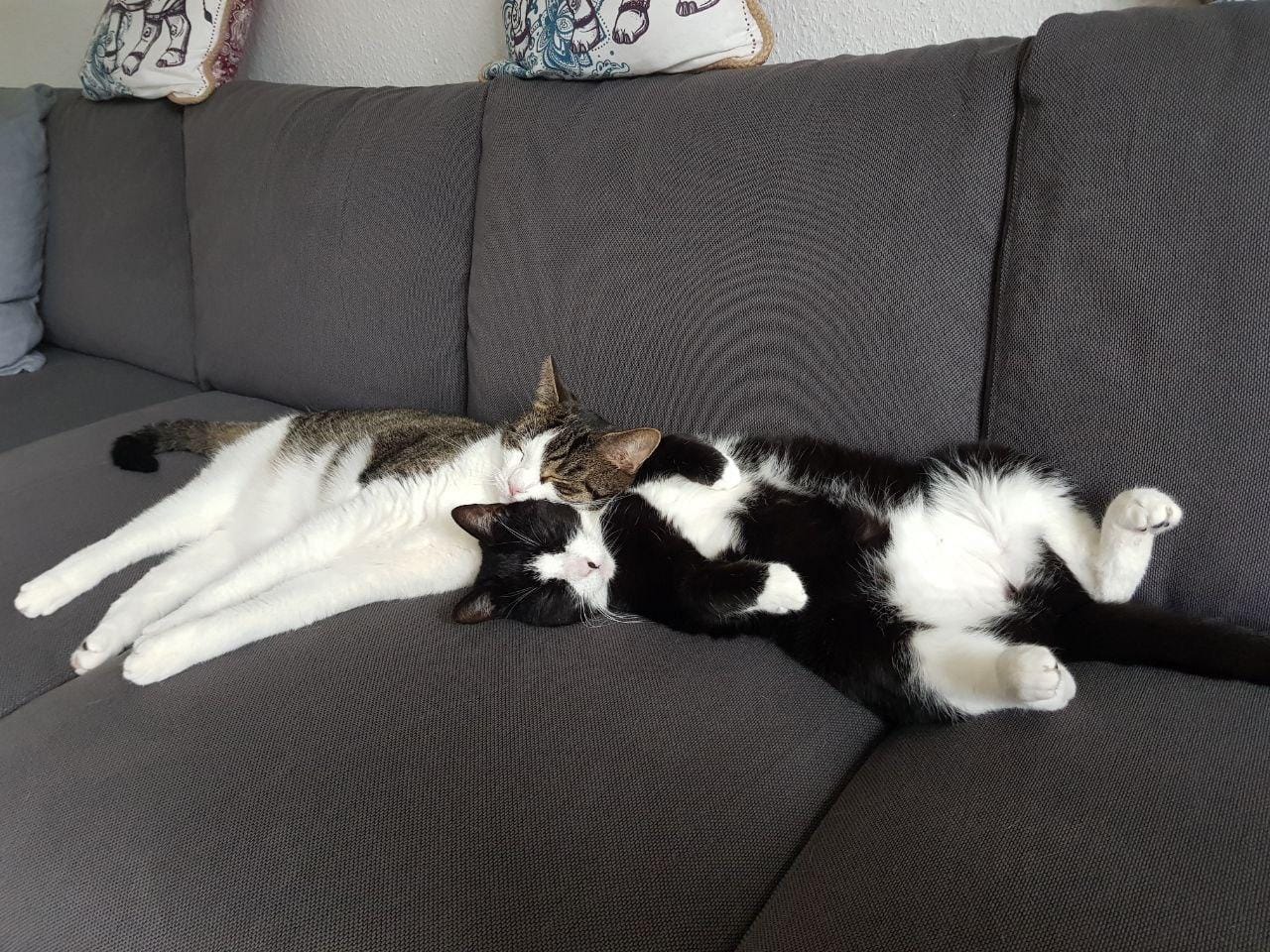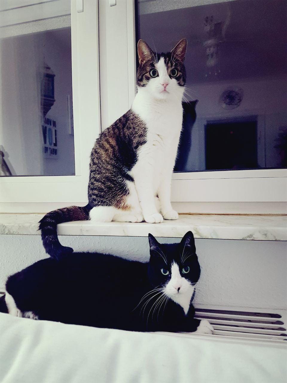 Natürlich sollen die beiden auf keinen Fall getrennt werden. Am besten wäre ein Haushalt ohne Kinder geeignet. Gerne bei älteren Menschen, wo sie ihre Ruhe haben und nicht viel Trubel ist. Sie haben natürlich auch zwischendurch ihre dollen 5 Minuten und jagen sich gegenseitig durch die Wohnung, aber sonst fressen und schlafen sie hauptsächlich. Katzen halt 😊.