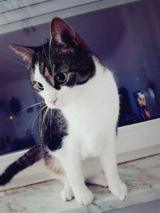 Tinka, die kleine schwarz – weiße Katzendame und Mama von Bruno ist ca. 2013 geboren und eine Diva mit ganz großem Herzen die, es liebt wenn, ihr Mensch zur rechten Zeit die streichelnde Hand anbietet. Sie sitzt gerne auf ihrem Lieblingsplatz am Fenster und beobachtet die Straße, wie eine Königin die über ihr Reich wacht.