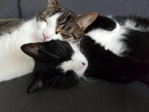 Die Beiden – Kater Memo und Katze Hexe – sind 8 Jahre alt und waren bisher noch nie krank, natürlich sind sie kastriert.